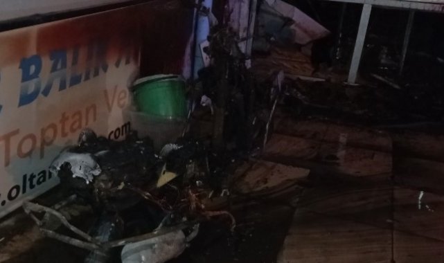 Dükkanın önünde park halinde bulunan motosiklet de alevlerden etkilenerek yandı. Yangın sırasında dükkanın üst katında bulunan evi dumanlar kapladı. Evde bulunan 2 kişi dumandan etkilenirken, durumun bildirilmesi üzerine olay yerine çok sayıda itfaiye ve sağlık ekipleri sevk edildi.