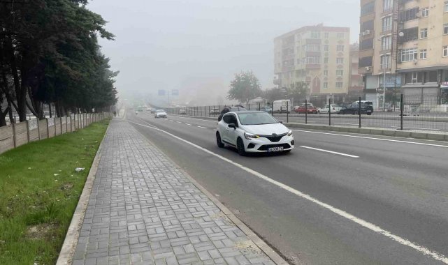 Tekirdağ'ın Kapaklı ilçesinde sabah saatlerinde etkili olan yoğun sis, görüş mesafesini yer yer 40 metreye kadar düşürdü.