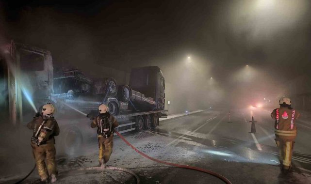 Pendik Sabiha Gökçen Havalimanı bağlantı yolundaki tünelde seyir halinde olan tırın kupa kısmında yangın çıktı. Yangın, paniğe neden olurken, yaşanan patlama anı cep telefonu kamerasına yansıdı.