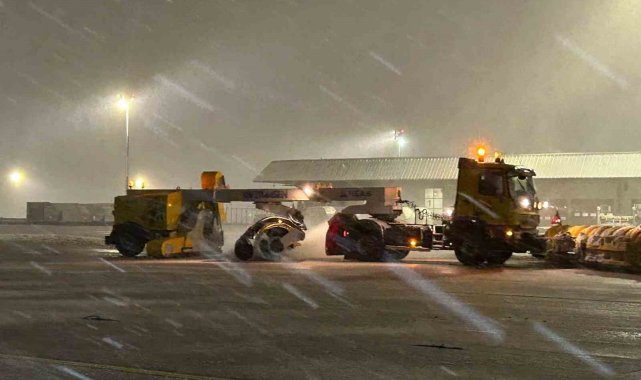 Sabiha Gökçen Havalimanı'nda kar ve buzla mücadele faaliyetleri sürüyor. HEAŞ'a bağlı 72 adet özel donanımlı araç ve 125 kişilik ekip, 2 pist, 8 apron, 56 taksi yolu, araç servis yolları ve park alanlarını temizleyerek uçuş güvenliğini sağlıyor.