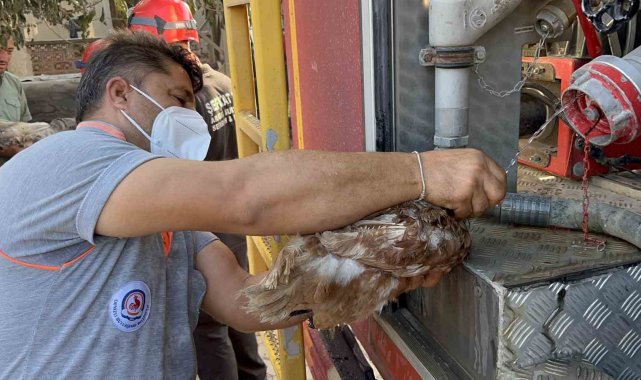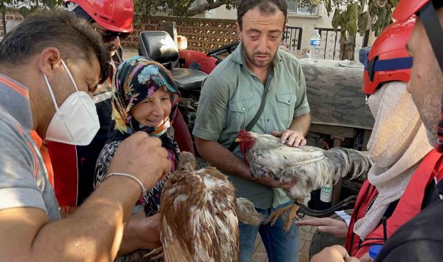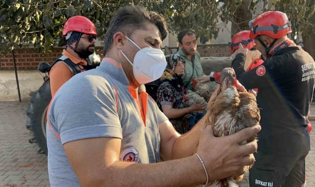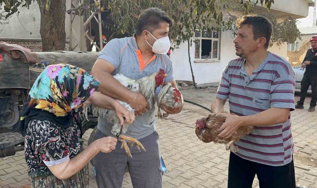 Saçaklı köyünde evi ve damı yanan kadının dumandan etkilenen tavuklarının yardımına ekipler ve gönüllüler koştu
