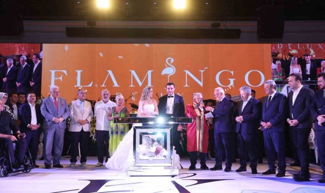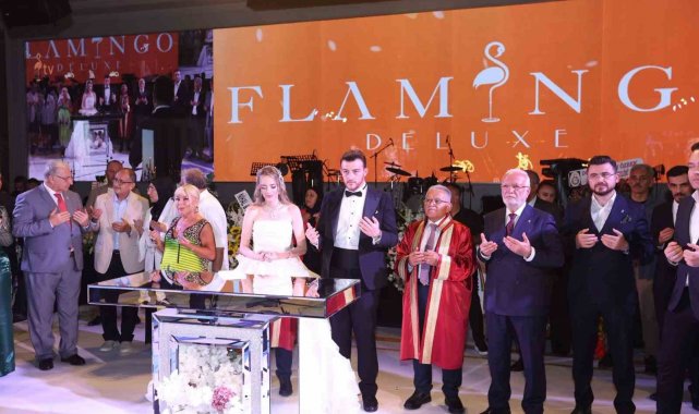 Düğüne katılan protokol üyeleri, genç çifte mutluluklar diledi.