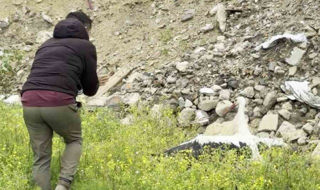 Saçmaların hedefi olan leyleğe kuş gözlemcisinden ilk yardım