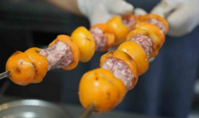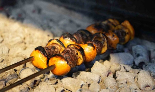 Malta eriği olarak da bilinen yenidünya meyvesi, kıymayla birlikte şişlere dizilerek ocakta pişirilirken, görüntüsü ve lezzetiyle turistlerin de ilgisini çekiyor.