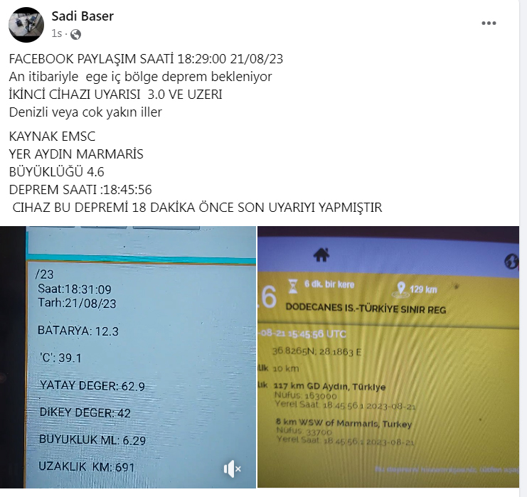 Titreşim sinyalleri ile belirliyorKahramanmaraş merkezli yıkıcı depremlerin ardından deprem için araştırmalarına yönelen Başer, mini hertz frekanslarının depremi önceden öngörebileceğinden hareketle küçük dalga boyuna sahip yeraltından gelen titreşim sinyallerini incelemeye başladı. Sensörünü kendi geliştirdiği cihazla 1000'in üzerinde depremi önceden tespit ettiğini söyleyen Başer, bu cihazın Türkiye'de belli mesafelerde yerleştirilip depremlerde yaşanan can kayıplarının önüne geçilebileceğini iddia ediyor.Yarım saat önce uyarıyorDeprem ön tanıma cihazı ile hayatların kurtulacağını öne süren Başer, "Bütün depremleri kesinlikle biliyoruz. Binin üzerinde kaydım var. Geliştirdiğim deprem ön tanıma cihazı, deprem olmadan yarım saat öncesinde uyarı veriyor. Depremin cihaza yakınlığına göre de büyüklüğünü öngörmek mümkün. Tek cihaz olduğu için konum belirtemiyoruz. Bu cihazdan Türkiye'nin her tarafına belli mesafelerde yerleştirilip, bilgisayar ağı ile haberleşme sağlandığında hangi bölgede, kaç şiddetinde deprem olacağını yarım saat önceden tespit edip, ilgili kurumlara iletebiliriz. Şu an maksimum 650 kilometre uzaktaki depremleri tespit edebiliyoruz.Osmaniye'deki, Kahramanmaraş'taki, Hatay'daki depremleri buradan görebiliyorum. Göksun'daki 5,3 büyüklüğündeki depremi önceden cihazla tespit etme imkanım oldu. Önceki gün Girit adasındaki 4,1 büyüklüğündeki depremi yarım saat öncesinden tespit ettim. Bu cihazın en basitinden İstanbul'da 4-5 bölgeye yerleştirilmesi, insanların depremde kendini emniyete almasını sağlar" diye konuştu.Konya ve Marmaris Depremlerini önceden bilen Başer Devlet yetkililerinin cihazının geliştirilmesi ve yaygınlaştırılması için destek bekliyor.