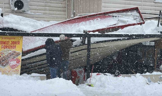 Olay, Sadri Artunç Caddesi'nde meydana geldi. Yoğun kar yağışının ardından biriken karın ağırlığına dayanamayan iş yerlerine ait çatı ve tenteneler çöktü.