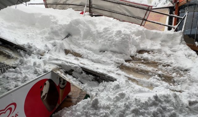 Safranbolu'da kar nedeniyle çatı ve tenteneler çöktü