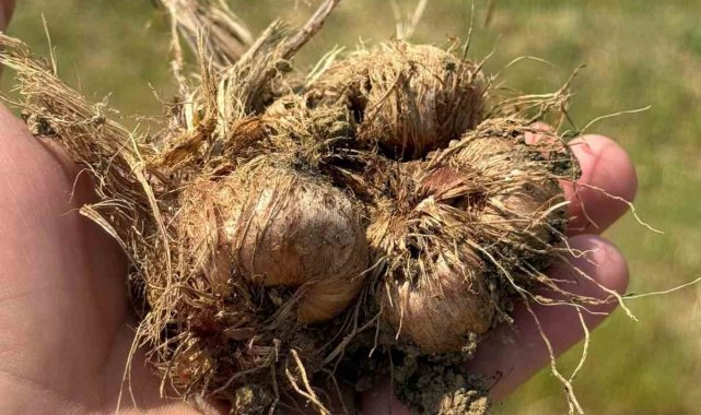 Safranova'nın Gayza köyündeki üretim sahasında başlayan hasatta, sadece çiçek üretimi değil, safranın geleceğini belirleyen soğanlar (yumrular) toprakla buluşturulmak üzere özenle ayrılıyor. Tohumla değil, yalnızca bu yumrularla çoğaltılabilen safran bitkisi için soğan kalitesi büyük önem taşıyor.