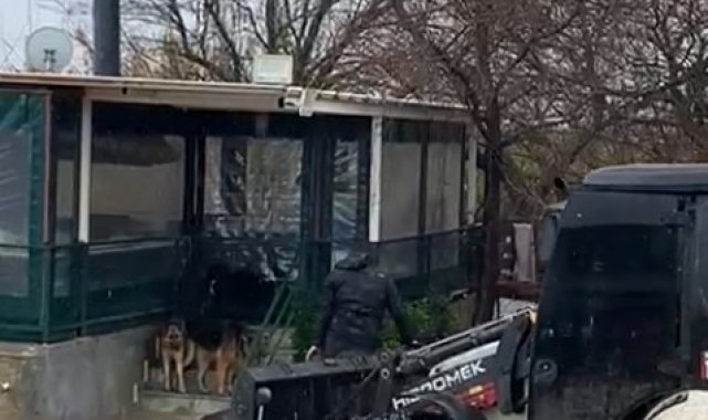 Sağanak sonrası evde mahsur kalan 4 köpek iş makinesiyle kurtarıldı