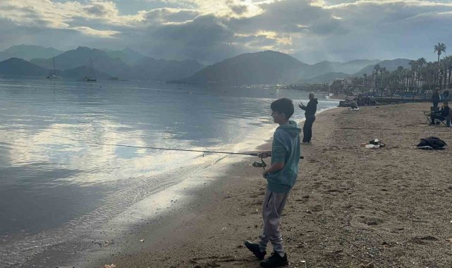 Yağmurun ardından ılık havayı fırsat bilen vatandaşlar, sahile inerek yürüyüş yaptı, güneşin tadını çıkardı. Yaz aylarında denize girip kulaç attıkları sahilde bu kez oltalar denize atıldı. Amatör balıkçıların bulunduğu halk plajında, balık tutanlara meraklı bakışlarla eşlik edenler de dikkat çekti. Güneşli havayı değerlendiren ilçe sakinlerinin yanı sıra Marmaris'i gezmeye gelen ziyaretçilerin de sahilde yoğunluk oluşturduğu gözlendi.