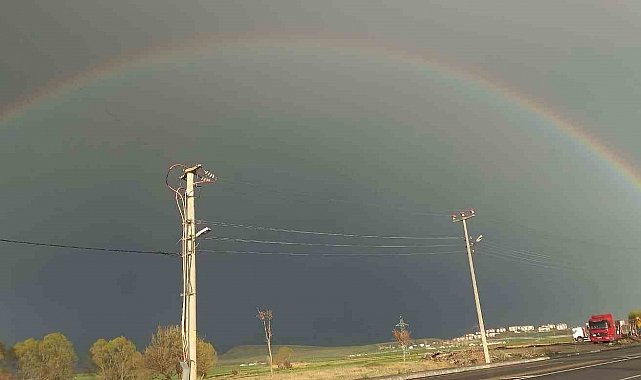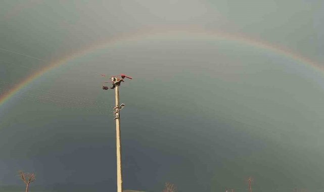 Sağanak sonrası oluşan gökkuşağı hayran bıraktı ti