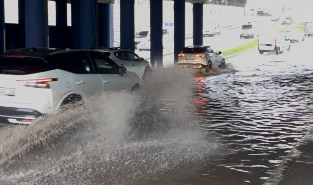 Bursa'da bir süredir devam eden lodos, yerini sağanak yağışa bıraktı. Yoğun yağışın ardından alt geçitte biriken sular, zaman zaman araç trafiğinin yoğun olduğu kavşakta ulaşımı olumsuz etkiledi. Su seviyesinin yükselmesiyle birlikte sular kaldırımlara kadar taştı.