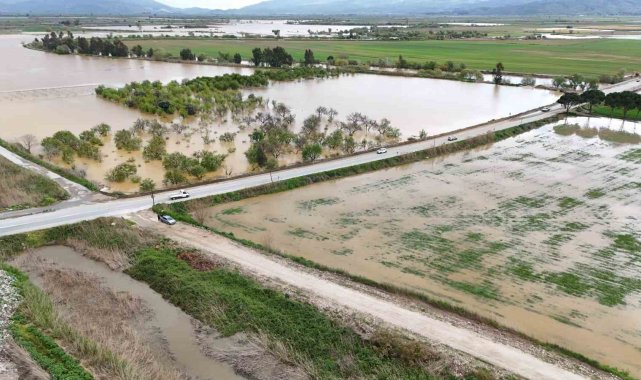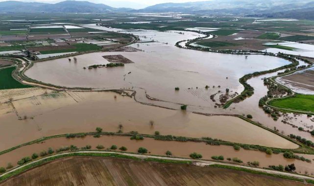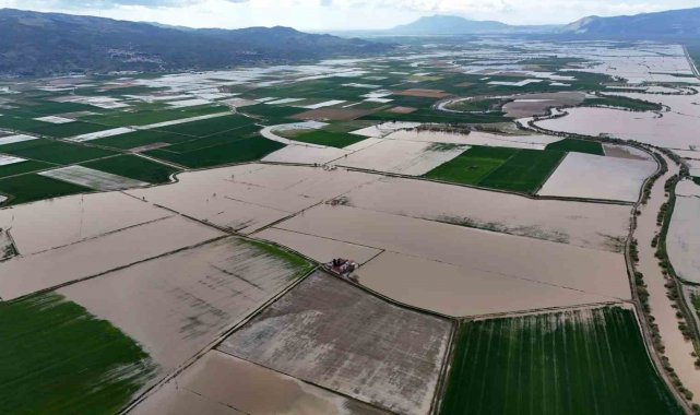 Öte yandan, taşkının boyutu dron ile havadan görüntülendi. Görüntülerde geniş tarım arazilerinin tamamen sular altında kaldığı ve suyun yerleşim yerlerine kadar yaklaştığı görüldü. Yaşanan taşkın, bölgedeki çiftçilerin ürünlerinde ciddi zarara yol açtı.