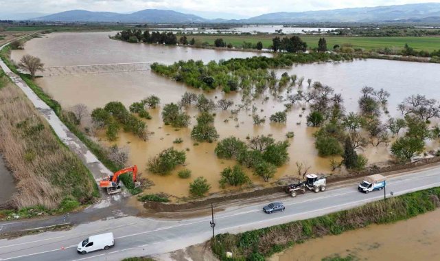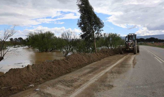 Aydın'da 2 gündür etkili olan sağanak yağışlar hayatı olumsuz etkiledi. Gece saatlerinde su seviyesinin kritik noktaya ulaşmasıyla birlikte Büyük Menderes Nehri, Koçarlı ilçesi sınırlarında taşarak çevredeki tarım arazilerini sular altında bıraktı. Özellikle ekili alanların bulunduğu bölgelerde geniş çaplı su birikintileri oluşurken, verimli ovalar adeta göle döndü. Taşkının etkisiyle İncirliova-Koçarlı kara yolu da sular altında kaldı. Ulaşım bir süre tamamen dururken, ihbar üzerine bölgeye sevk edilen ekipler hızla müdahale başlattı. Yapılan müdahalenin ardından suyun akışı yeniden sağlanırken, kapanan kara yolu kontrollü olarak tekrar ulaşıma açıldı. Bölgede ekiplerin yeni taşkınlara karşı çalışmaları aralıksız sürüyor.