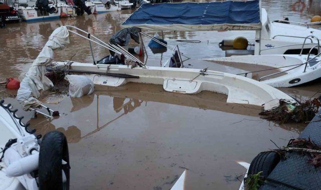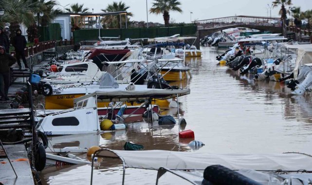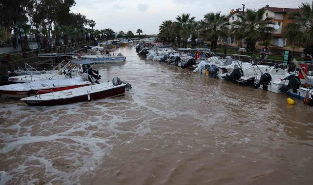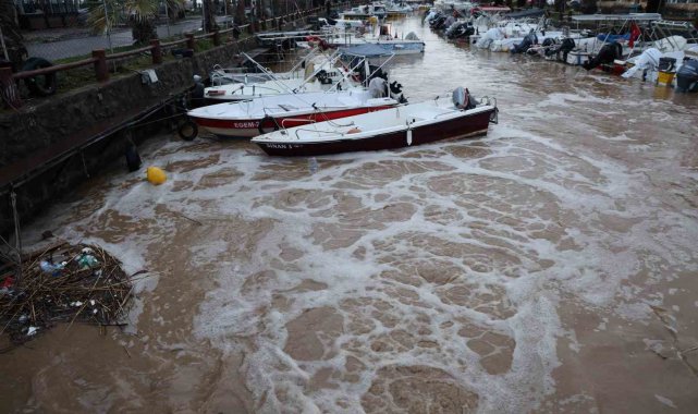 Aydın'ın Kuşadası ilçesinde etkili olan sağanak yağışla beraber oluşan sel sebebiyle Davutlar Balıkçı Barınağı'nda bağlı tekneler zarar görürken, bazı tekneler battı.
