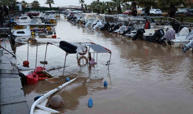 Kuşadası'nda etkili olan sağanak yağış, ilçe genelinde hayatı olumsuz etkiledi. Özellikle Davutlar ve Güzelçamlı mahallelerinde taşkınlar meydana gelirken, sel baskını yaşandı. Birçok noktada sokak ve caddeler trafiğe kapanırken, balıkçı barınağında bulunan tekneler de selden nasibini aldı. Denize doğru akan sel suları, Davutlar Balıkçı Barınağı'nda bağlı teknelere doldu. Yoğun su alan yaklaşık 10 tekne batarken, çok sayıda teknede de zarar meydana geldi. Yaşanan olayın ardından bölgeye gelen tekne sahipleri, teknelerine dolan suları kendi imkanlarıyla tahliye etmeye çalışırken, batan teknelerin ise kaldırılması için çalışma başlatıldı. Sel sularının bir anda barınağın duvarını aşarak bağlı olan teknelerin içine dolduğunu ifade eden tekne sahipleri, çok sayıdaki teknenin de sürüklenerek çarpışması sonucu zarar gördüğünü söyledi. Bölgede sel baskınına ilişkin çıkan haberleri gören bazı tekne sahipleri de barınağa gelerek hem teknelerini kontrol etti hem de batan teknelerin kurtarılmasına destek verdi.