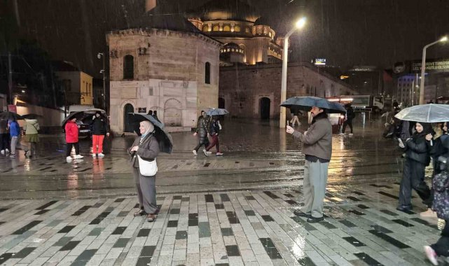 İstanbul'da beklenen sağanak etkisini göstermeye başladı. İstanbul Valiliği tarafından su baskınlarına ve kuvvetli yağışa dikkat çekilerek uyarı verilmişti. Gün içinde aralıklarla etkisini gösteren yağmur gece saatlerinde sağanak olarak şiddetini artırdı. Sağanak şeklinde ve gök gürültülü başlayan yağmur vatandaşları da zor durumda bıraktı. Taksim'de vatandaşların yürümekte zorlandığı ve açık olan dükkanlara sığınmak zorunda kaldığı görüldü. Şiddetli yağmur araçlara da zorluk çıkardı. Vatandaşlar yürümekte zorluk çekerken ara ara şimşeklerin de geceyi aydınlattığı görüldü. Yağmura hazırlıksız yakalananlar ise koşarak sığınacak yer aradı.