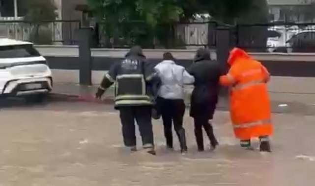 Adana'da sağanak yağışta mahsur kalan vatandaşların yardımına itfaiye ekipleri koştu. Sarıçam ilçesinde suya gömülen servis aracındaki vatandaşlar, ekipler tarafından merdiven uzatılarak kurtarıldı.