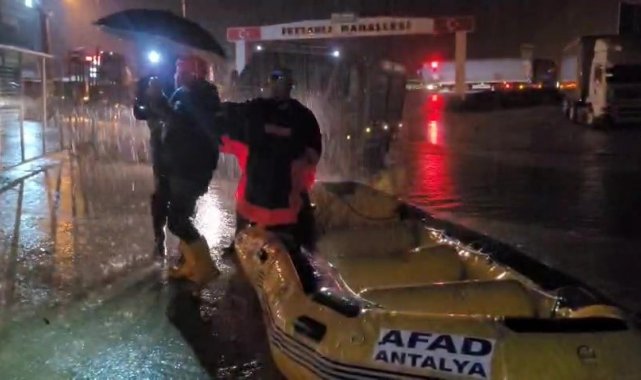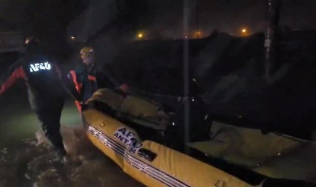 Sarı kod ile uyarılan Antalya'da dün gece başlayan e birçok bölgede etkili olan şiddetli yağış sabah saatlerine kadar sürdü. Yağış nedeniyle yollar adeta göle dönerken araç ve evlerinde mahsur kalan vatandaşlar AFAD ekipleri tarafından botla kurtarıldı.