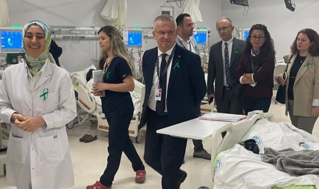 Sağlık çalışanları organ bağışının önemine dikkat çekmek için yeşil kurdele taktı