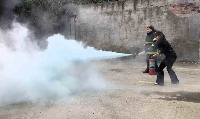 Sağlık çalışanlarına uygulamalı yangın eğitimi verildi