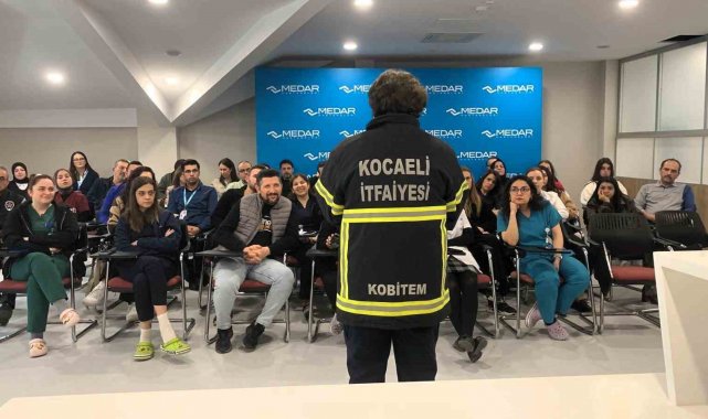 Kocaeli'de itfaiye ekipleri, hastanelerde görev yapan personele yönelik düzenlediği yangın güvenliği programında sağlık çalışanlarına acil durumlara karşı teorik ve uygulamalı eğitim verdi.