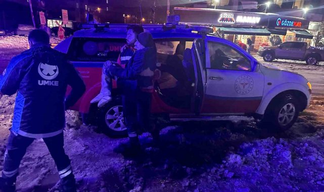 Sağlık ekipleri karlı yolda zamanla yarışarak hastaya ulaştı