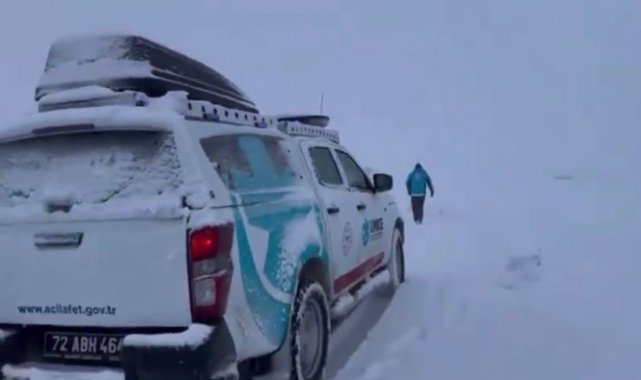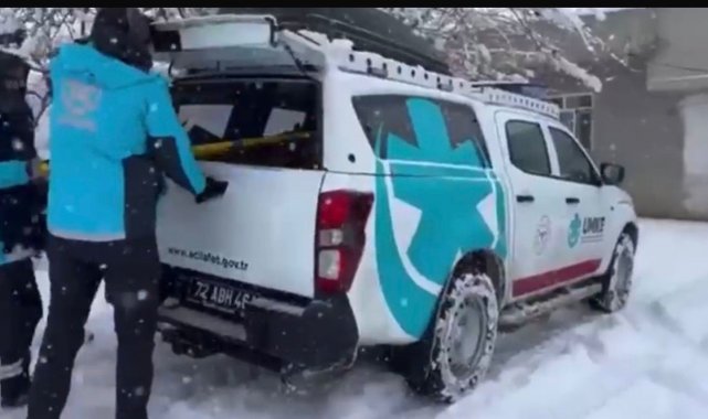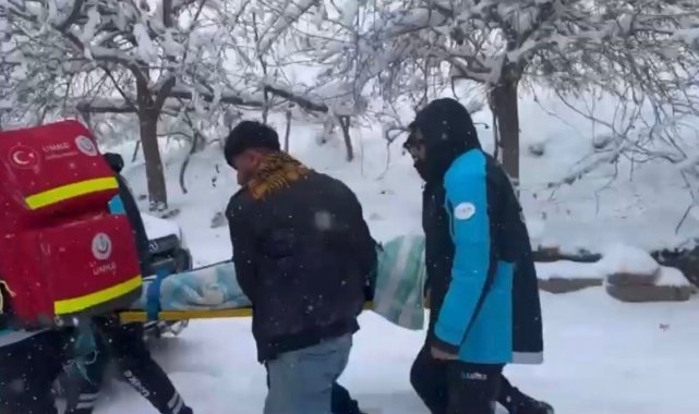 Sağlık ekipleri zorlu kar yolculuğunun ardından hastaya ulaştı