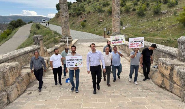 Halk Sağlığı Hizmetleri Başkanı Dr. Mustafa Kutlu, Acil Afetler Şube Müdürü Tülay Altuğ, sağlık çalışanları ve kurum personellerinin de katılım gösterdiği "Sağlık için hareket et" etkinliği kapsamında Adıyaman'ın tarihi yerleri gezildi.