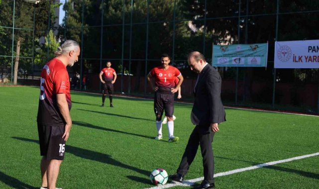 Aydın'da sağlık çalışanlarını bir araya getiren Geleneksel 7. Sağlık Kupası Futbol Turnuvası, açılış vuruşunun yapılmasıyla başladı. "En Büyük Şampiyonluk Sağlıklı Hayattır" temasıyla düzenlenen turnuva, Aydın İl Sağlık Müdürü Dr. Eser Şenkul'un yaptığı başlama vuruşuyla start aldı. İl genelinde faaliyet gösteren sağlık kurum ve kuruluşlarında görev yapan personellerin katıldığı organizasyonda 27 takım sahaya çıktı. Sağlık çalışanları arasında birlik, beraberlik ve dayanışmayı güçlendirmeyi amaçlayan turnuva, yoğun çalışma temposu içerisindeki personelin moral ve motivasyonuna katkı sunmayı hedeflerken, turnuva kapsamında takımlar 7 grupta mücadele edecek. Grup aşamalarının ardından her gruptan ilk iki takım ile en iyi 2 grup üçüncüsü bir üst tura yükselecek. Son 16 turuyla devam edecek organizasyonda çeyrek final, yarı final ve final müsabakalarının ardından şampiyon takım belirlenecek. Toplam 54 maçın oynanacağı turnuva sonunda kazanan ekip kupanın sahibi olacak.