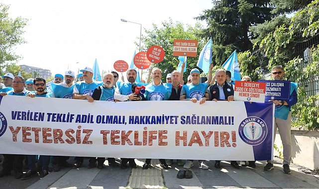 Burada konuşan Sağlık-Sen Genel Başkanı Mahmut Faruk Doğan, "Bugün 8. Dönem Toplu Sözleşme görüşmelerinde kamu işvereninin sunduğu teklife karşı ortak irademizi sesimizi ve kararlılığımızı göstermek için buradayız. Sorunların masada çözülme imkanı varken kamu işvereninin yetersiz ve adaletsiz teklifi kamu görevlilerini ve emeklileri meydanlara ve eylemlere mecbur kılmıştır. Bildiğiniz üzere kamu işvereni 2026 için yüzde 10+6 altı 2027 için 4+4 zam önerisinde bulunmuştur. Bu teklif memurun emeğini alın terini yok sayan yetersiz bir tekliftir. Bu teklif kabul edilebilirlikten çok uzaktır" açıklamasında bulundu.