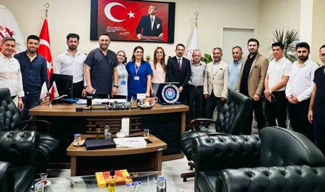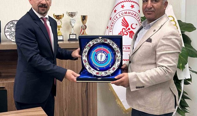 Ziyaret sonunda, Sağlık-Sen heyeti tarafından Başhekim Dr. Mehmet Halit Sapan'a bir plaket takdim edildi.