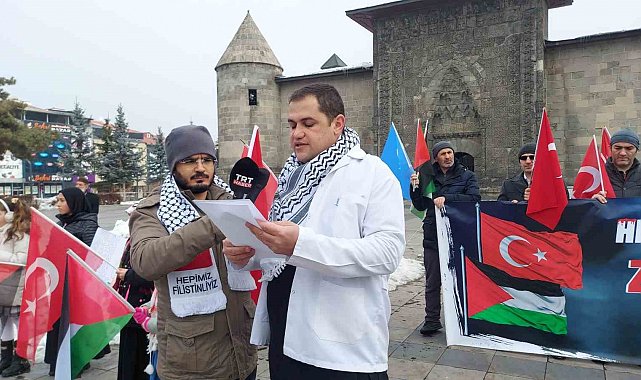 Lala Paşa Cami önünde bir araya gelen doktorlar, tıp ve eczacılık fakültesi öğrencileri, sağlık çalışanları ile vatandaşlar, Türk, Filistin ve Doğu Türkistan bayrakları eşliğinde taşıdıkları döviz ve pankartlarla Yakutiye Medresesi'ne kadar yürüdüler. Burada Grup adına açıklama yapan Bünyami Yeşilyurt okuyan "Elhamdulillah Gazze'de ateşkes ilan edildi. Bugün Gazze kazandı. Allah'a sığınanlar kazandı. Umutlarını hiç kaybetmeyenler kazandı. Gözleri yaşlı şekilde 'Elhamdulillah' diyen çocuklar kazandı. Evlatlarını feda eden anneler kazandı. Gazzede artık bomba sesleri değil zafer nidaları yankılanıyor. Siyonizm; tarihin en büyük yenilgisini yaşıyor. Bir sabah geldi kardan aydınlık ve daha niceleri gelecek inşallah. Önce Şam'ın zaferi şimdi Gazze zaferi Rabbim Gazze'nin ve Batı Şerianın İsrail'den tamamen kurtulduğu, Mescid-i Aksa'nın özgür olduğu günleri de görmeyi nasip etsin bize. Doğu Türkistanlı kardeşlerimizin Çin zulmünden kurtulduğu gün de birlikte sevinelim inşallah. Gazze'den içeri tarihte görülmemiş sayıda yardım kamyonu giriyor. İsrailin hapishanelerindeki yüzlerce masum kardeşimiz özgürlüğüne kavuşacak. Dünyanın gözleri baskıcı zorba işgalci İsrail'in üzerine çevrildi, şuana kadar sessiz sessiz yaptıkları zulümler artık bir tıkla her yere yayılacak. Ve daha neler neler kazanıldı, kazanılacak Allahın izniyle birlikte göreceğiz" şeklinde konuştu.