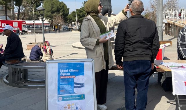 Manisa'nın Alaşehir ilçesinde 4 Mart Dünya Obezite Günü kapsamında düzenlenen etkinlikte vatandaşların boy ve kilo ölçümleri yapılırken, sağlıklı beslenme ve fiziksel aktivite konusunda bilgilendirme gerçekleştirildi.