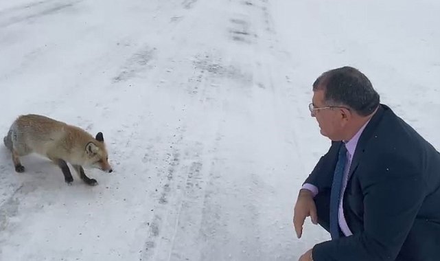 Artvin'in Şavşat ilçesinde Belediye Başkanı Durmuş Aydın, Sahara Geçidi'nde aracıyla seyir halindeyken karlı yolda bir tilkiyle karşılaştı. Yoğun kar yağışının etkili olduğu bölgede yol kenarında duran tilkiyi fark eden Aydın, aracını durdurarak aşağı indi. Soğuk hava ve kar nedeniyle yiyecek bulmakta zorlandığı değerlendirilen tilkiye yiyecek veren Başkan Aydın, hayvanla bir süre ilgilendi. Başkan Aydın'ın tilkiye, "Sen ne güzelsin, ne güzel yüzün var. Görüşürüz bay bay" diyerek seslenmesi dikkat çekti.