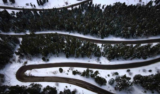 Sahara Geçidi'nin kış manzarası havadan görüntülendi