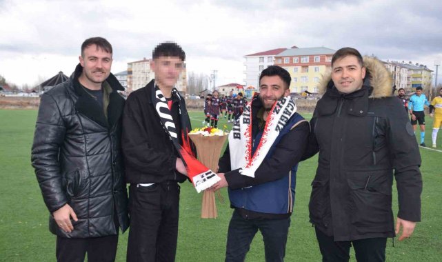 Muş'un Bulanık ilçesinde Süper Amatör Ligi'nde mücadele eden Kopspor taraftarı, sahaya attığı pet şişenin isabet ettiği polise çiçek ve takımın atkısını takdim etti.