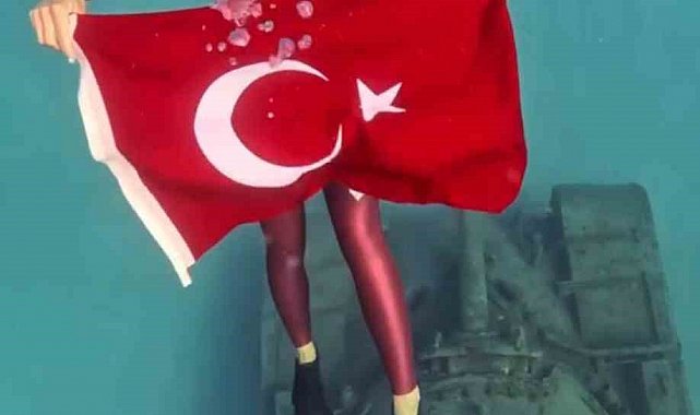 Dünya Şampiyonası hazırlıklarını Kaş'ta sürdüren milli sporcu Şahika Ercümen, 30 Ağustos Zafer Bayramı dolayısıyla batırılan tanka dalış yaparak Türk bayrağı açtığı görüntüleri sosyal medya hesabından paylaştı.