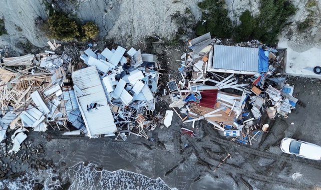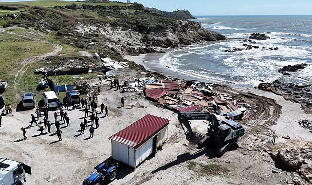Sahil kenarındaki kaçak yapıların yıkımı sürüyor