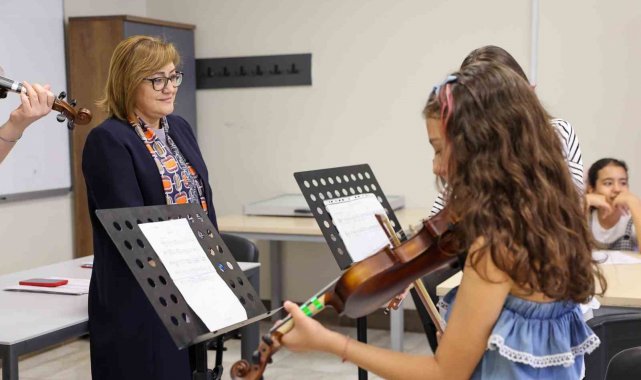 Bu kapsamda ziyaretine Piyano sınıfında öğrencilerin performanslarını dinleyerek başlayan Başkan Fatma Şahin, eserleri kursiyerlerle birlikte seslendirdi.