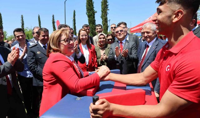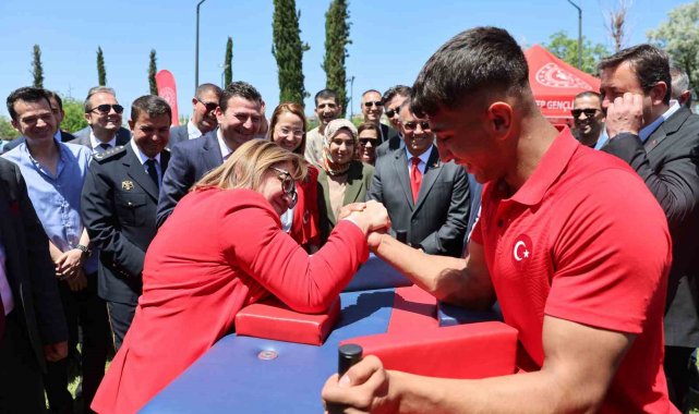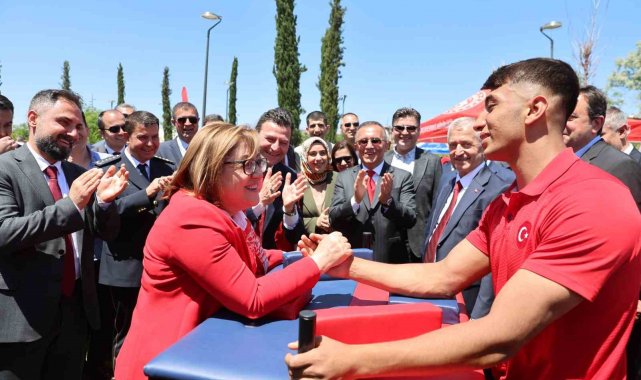 Gaziantep Büyükşehir Belediye Başkanı Fatma Şahin, 19 Mayıs Atatürk'ü Anma Gençlik ve Spor Bayramı etkinliklerinde yer alan sporcuyla bilek güreşi yaptı.