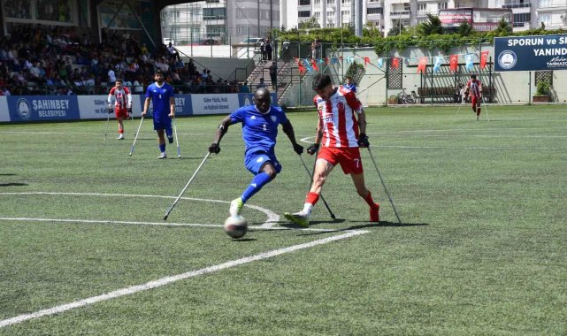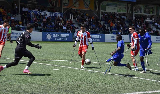 Şahinbey Belediye Spor Kulübü Ampute Futbol Takımı, kendi evinde TSK Rehabilitasyon Merkezi Engelli Spor Kulübü Ampute Futbol Takımı'nı 2-1 mağlup ederek şampiyonluk yolunda bir engeli daha aştı.