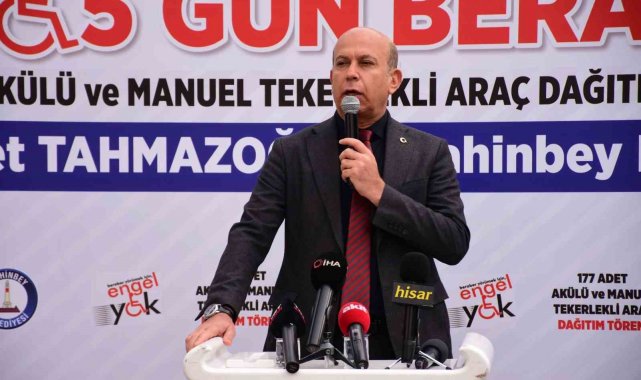 Şahinbey Belediye Başkanı Mehmet Tahmazoğlu, 3 Aralık Dünya Engelliler Günü münasebetiyle engelli vatandaşlara 177 adet akülü ve manuel tekerlekli sandalye hediye etti.
