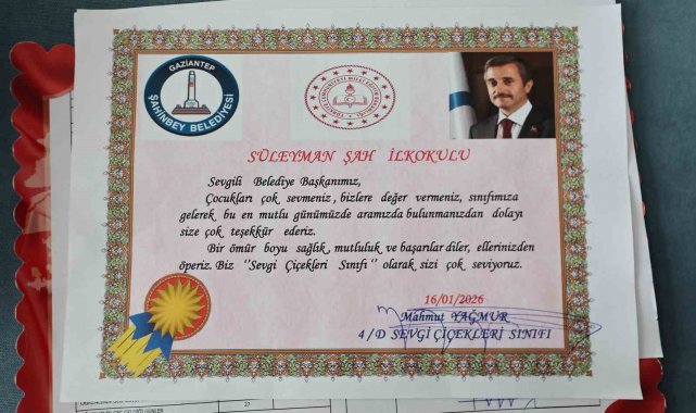 Öğrencilerin karne sevincine ortak olmak amacıyla Süleyman Şah İlkokulu'nu ziyaret eden Şahinbey Belediye Başkanı Mehmet Tahmazoğlu, burada anlamlı bir sürprizle karşılaştı. Öğrenciler, Başkan Tahmazoğlu'nun Şahinbey ilçesine kazandırdığı hizmetlerin anlatıldığı özel bir karne ve teşekkür belgesi hazırladı.