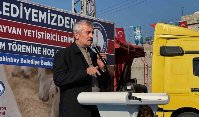 Törenden sonra konuşan Tahmazoğlu, "Şahinbey Belediyesi olarak her yıl olduğu gibi bu yıl da çiftçilerimize arpa, buğday, yem ve fide desteği sağlamaya devam ediyoruz. Bugüne kadar toplam 50 bin ton yem desteği verdik. Bugün de çiftçilerimize 7 bin ton yem dağıtıyoruz. Bu miktar, yaklaşık 140 bin torba ve her biri 50 kilogramdan oluşuyor. Dağıtımı, çiftçilerimizin ayağına kadar götürerek köylerinde teslim ediyoruz, yani onlara 'gelin alın' demiyoruz, biz bizzat ulaştırıyoruz. Son yedi yıldır sürdürdüğümüz bu destekler sayesinde Şahinbey'deki hayvan sayısı yüzde 50 arttı. Ekili alanlar ise 80 bin dekardan 300 bin dekara çıktı. Türkiye genelinde köylerden şehirlere göç yaşanırken, Şahinbey'de tam tersi bir durum söz konusu; şehirden köye göç başladı" dedi.