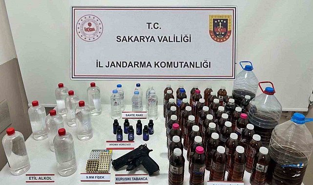Sakarya İl Jandarma Komutanlığı, sorumluluk bölgesinde sahte alkol üretimi ve satışının engellenmesine yönelik çalışmalarına devam ediyor. Bu çerçevede ilçede sahte içki üreterek piyasaya süreceği öğrenilen bir şüpheli gözaltına alındı. Yapılan ev ve iş yerinde aramasında da, 35 litre sahte viski, 8 litre etil alkol, 3 litre sahte rakı, 7 adet aroma verici kit, 1 adet kuru sıkı tabanca, 25 adet tabanca fişeği, 50 adet kuru sıkı tabanca fişeği ele geçirildi.