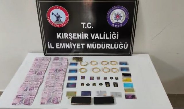 İl Emniyet Müdürlüğü Asayiş ve İstihbarat Şube Müdürlükleri ekipleri farklı illerdeki kuyumculara sahte altın bilezikleri satarak dolandırıcılık yapan şebekeyi tespit etti. Şebekenin kadın üyesi G.Y.'nin sahte altın bozdurarak Kırşehir'de iki kuyumcuyu daha dolandırdığı ihbarı üzerine harekete geçen Dolandırıcılık Büro Amirliği ekipleri, H.D.'yi kaçmak üzereyken il merkezinde yakalayarak gözaltına aldı. Şüphelinin üzerinde yapılan aramada 3 tel örgü sahte altın bilezik, 5 adet 1 gramlık 24 ayar has altın, 2 adet 10 gramlık 24 ayar has altın ve 27 bin 750 TL ele geçirildi. Yapılan araştırmalar sonucu H.D.'nin G.Y. ile birlikte Denizli'den otobüsle Ankara'ya geldiği, burada M.T. ile buluştuğu tespit edildi. Çalışmalarını derinleştiren ekipler, G.Y. ve M.T.'nin Aksaray'da olduğunu belirledi. Kırşehir ve Aksaray Emniyet Müdürlükleri'nin ortak operasyonuyla iki şüpheli de yakalandı. Şüphelilerin üzerinde yapılan aramada; 5 tel örgü sahte altın bilezik, 6 adet 1 gramlık 24 ayar has altın, 4 adet 5 gramlık 24 ayar has altın, 28 adet 200 TL'lik banknot olmak üzere toplam 5 bin 600 TL, 1 altın görünümlü kadın kolyesi, 2 altın görünümlü küpe, 1 altın görünümlü bileklik, 10 farklı bankalara ait kredi kartı, 3 cep telefonu, 4 sim kart, 2 içime hazır uyuşturucu madde, 5 sentetik uyuşturucu hap ve 1 yasaklı bıçak ele geçirildi.