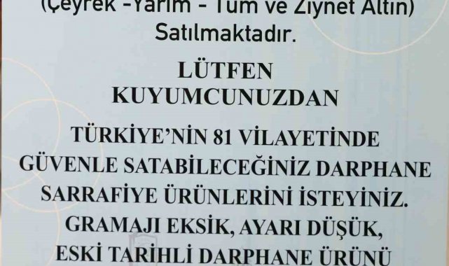 Yurt genelinde son dönemlerde sahte veya ayarı düşük altın satışlarının artması üzerine yaşanan mağduriyetlerin önüne geçebilmek için Adana'da kuyumcular iş yerlerine 'Bu iş yerinde sadece yeni tarihli darphane sarrafiye ürünleri satılmaktadır' yazılı dövizler astı. Uygulamayla birlikte artık kuyumcularda sadece yeni tarihli darphane çeyrek, yarım ve tüm altın satabileceği bildirildi. Müşterilerin sattığı altınlar kesilip, eritmeye yollanırken uygulamadan hem esnaf hem de vatandaşlar memnun oldu.