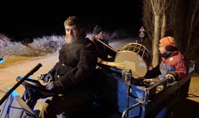Konya'nın Bozkır ilçesine bağlı Sazlı Mahallesinde, Ramazan ayının vazgeçilmez geleneği olan davulla sahura uyandırma geleneği, bu yıl farklı bir şekilde hayata geçiriliyor. Tarımla uğraşan mahalle sakinleri, sahur vaktinde köy halkını uyandırmak için geleneksel davulun yanı sıra 'patpat' adı verilen tarım aracını kullanıyor. Renkli uygulama köy sakinleri tarafından memnuniyetle karşılanırken, mahallede yaşayan Mustafa Uysal ve Abdullah Köse, Ramazan davulculuğu geleneğini patpat aracıyla birleştirerek köydeki herkesi sahura kaldırıyor. Mustafa Uysal'ın kullandığı patpat aracının sesi, Abdullah Köse'nin davul sesiyle birleşirken, sahura kalkamayan kimse kalmıyor.