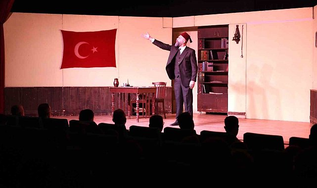 Vatan şairi Mehmet Akif Ersoy'un İstiklal Marşı'nı nasıl ve hangi şartlarda yazdığını anlatan tek kişilik 'Şair, Şiir, Şuur Mehmet Akif Ersoy' oyunu, Osmangazi Gösteri Merkezi'nde tiyatroseverlerle buluştu.